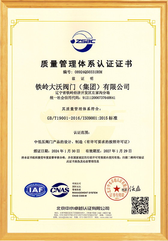 鐵嶺大沃閥門(集團)有限公司,是原鐵嶺閥門廠改制后,以原國有企業(yè)各領(lǐng)域的骨干精英為核心所組建的創(chuàng)新型企業(yè)。公司在傳承老“鐵閥”所積淀的“管理嚴格、質(zhì)量第一”精神的同時,將“以客戶為中心,市場為導(dǎo)向,科技創(chuàng)新為支撐”作為發(fā)展理念;將“修為礪器,誠信匠心”作為核心價值觀。在近十年的發(fā)展歷程中,鐵嶺大沃人通過不懈地探索和創(chuàng)新,逐步形成了獨特的經(jīng)營模式及核心競爭力。成為遼寧省企業(yè)廳命名的省級創(chuàng)新型企業(yè);成為通過ISO 9001質(zhì)量管理體系、ISO14001環(huán)境管理體系和ISO 18001職業(yè)健康安全管理體系認證,以及特種設(shè)備制造許可證認證......
